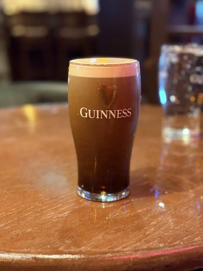 A pint of Guinness with its signature creamy head -