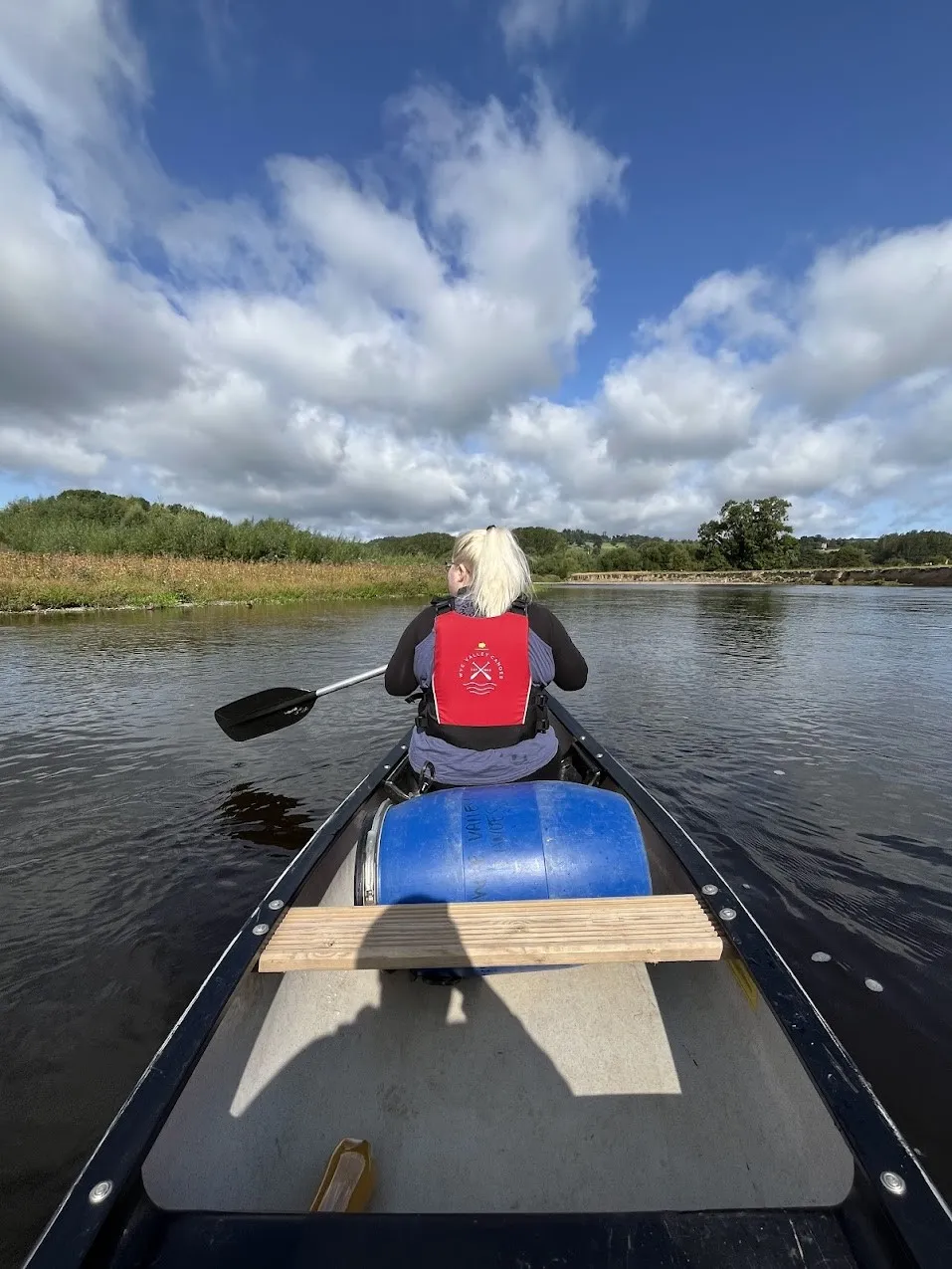 This threw the boat over again and this time we lost a paddle whilst my wife was searching for her glasses (she found them!). I was desperately trying to stop both our dry barrel (containing our lunch, car keys, and wallets) and the canoe from pootling off downstream without us. After being dragged through the shallow water along the stones, I managed to get the boat against the rocks and secured the dry barrel. The paddles both drifted off though slowly into the distance. Thankfully, Amelia managed to rescue one of them but the other had drifted onwards when she grabbed the first one. A massive 'THANKS' to the groups of people sat watching who didn't grab the paddle as it pootled past them in the shallows. 😅