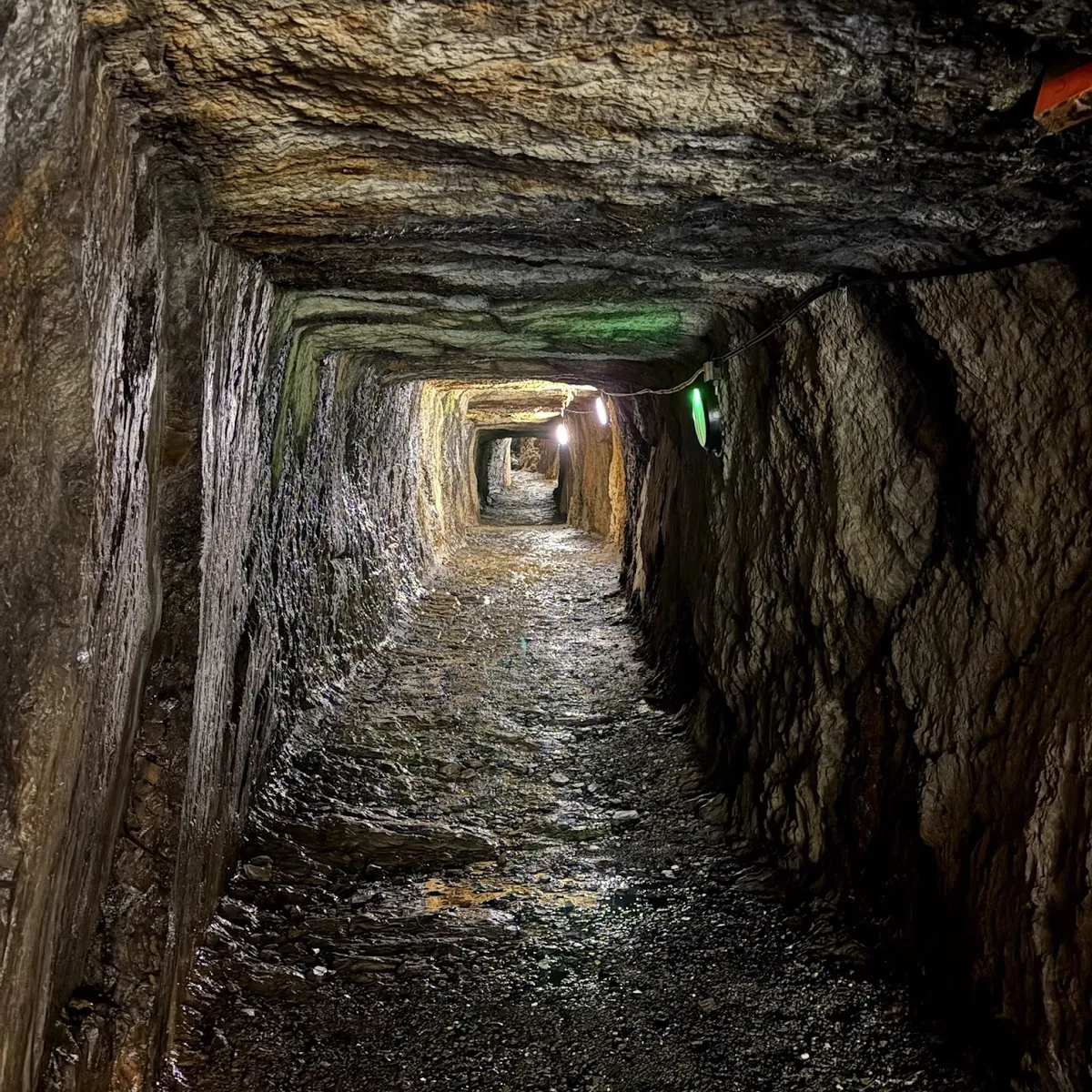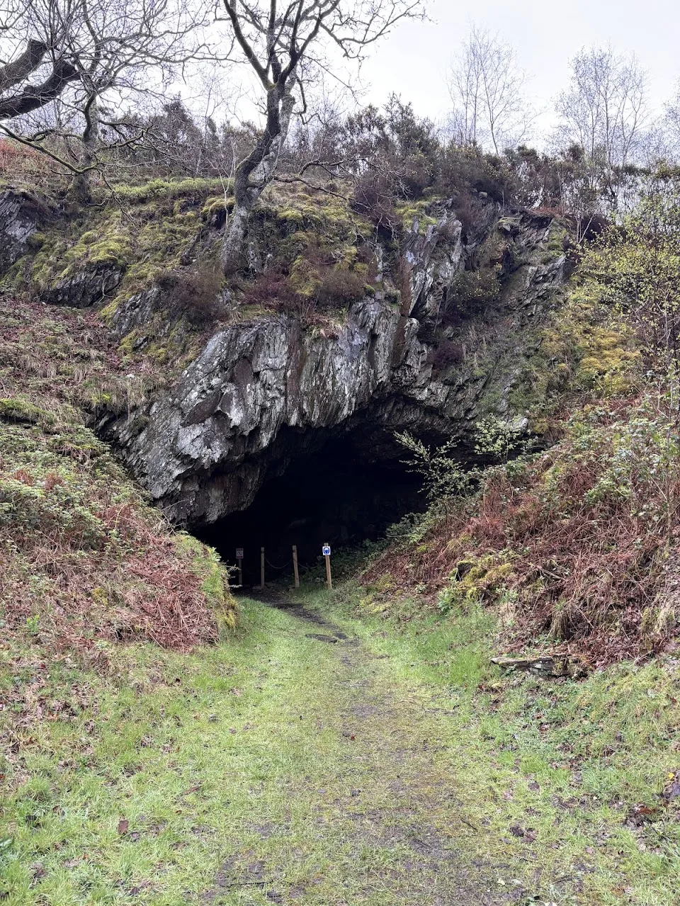 After completing the guided Victorian Mine tour, you can head to a self guided walk through the Roman mines. We got our kit, and set off through the woods. It was a bit weird walking through the woods with a helmet, but it also felt strange to carry it... After a short while, we made it to the entrance of the mine and entered. It felt like a tunnel I'd build in Minecraft. Dead straight, directly through the hill. Just standing here and absorbing the history felt great.