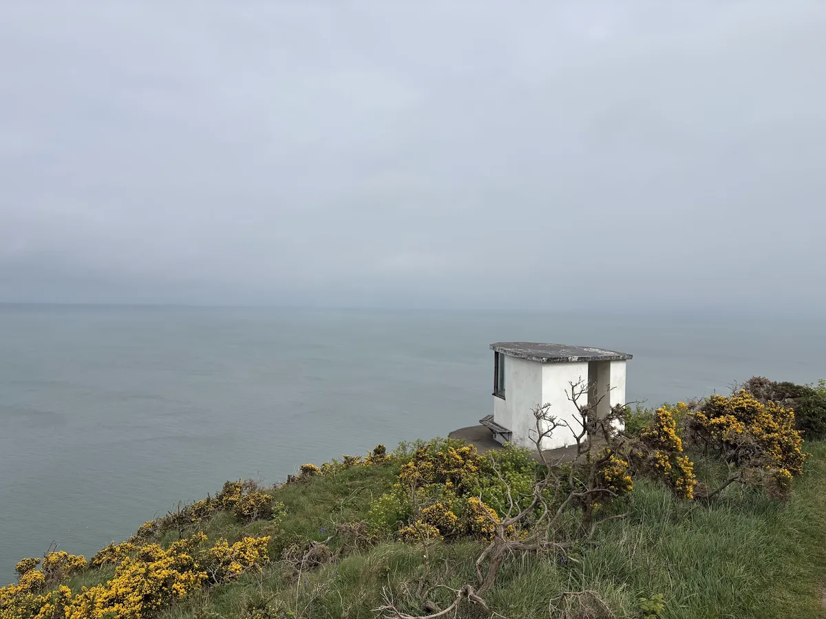 Further along the coastal path, we came to the observation post we saw from the boat. This was an ideal spot to stop for lunch. This building was originally built in the 19th century as a look-out point for the coast guard, and it is preserved today to allow us to stop for lunch! After contemplating the views for a while, we headed back into New Quay.